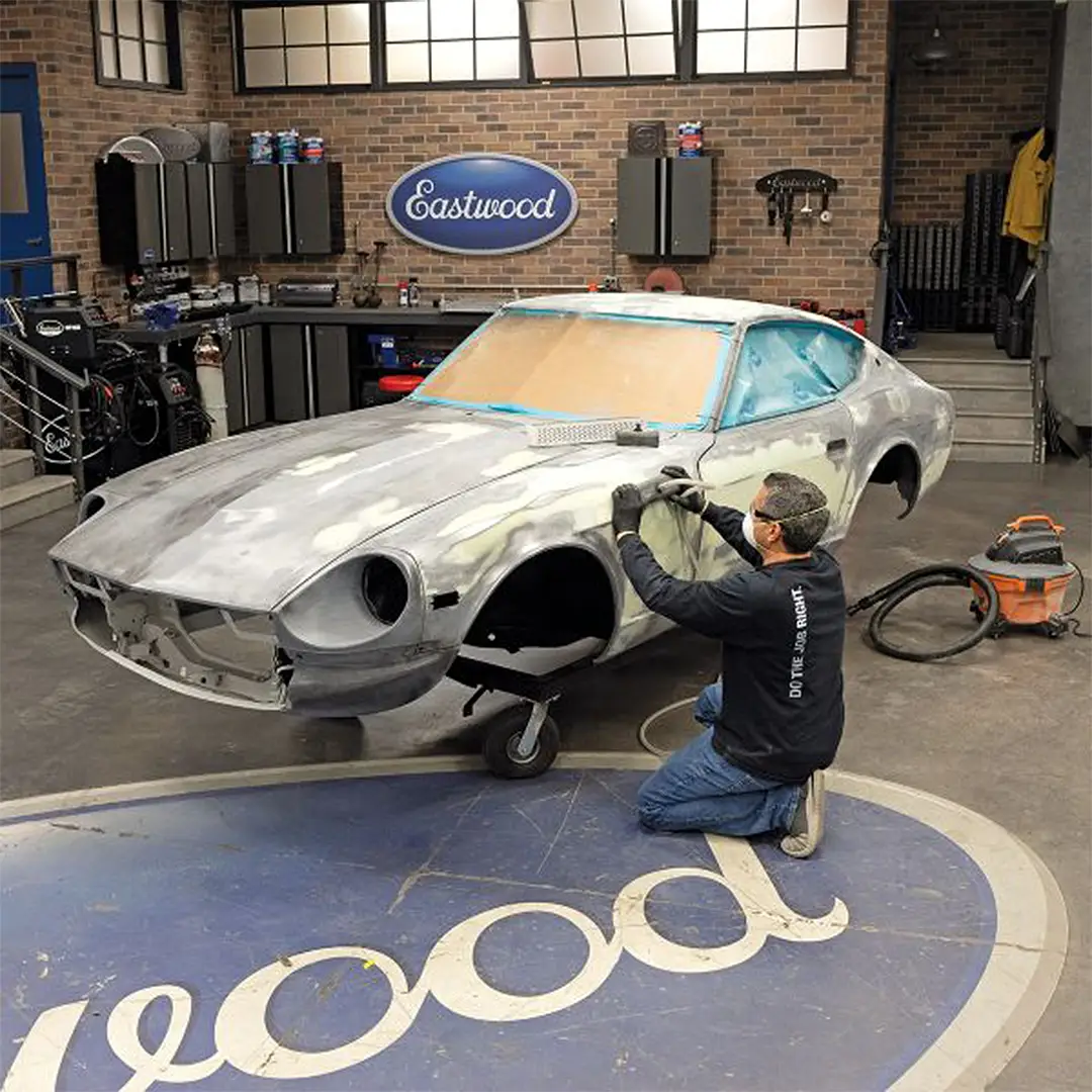 Paint is the first thing people notice, and the basis for a great paint job is great bodywork. The Eastwood Contour DSB System will allow you to get the results you want with the benefit of almost no dust. The saying goes “90% of the body filler ends up on the floor”, and anyone who has sanded filler knows that is completely true. But when you use the DSB System it ends up in your shop vacuum rather than on your clothes, everything in your shop and getting tracked all over the garage and house.
