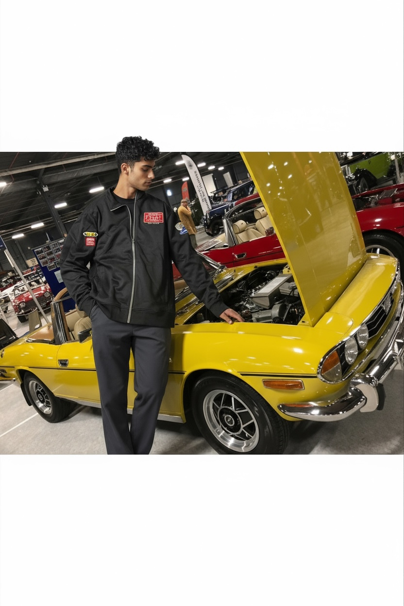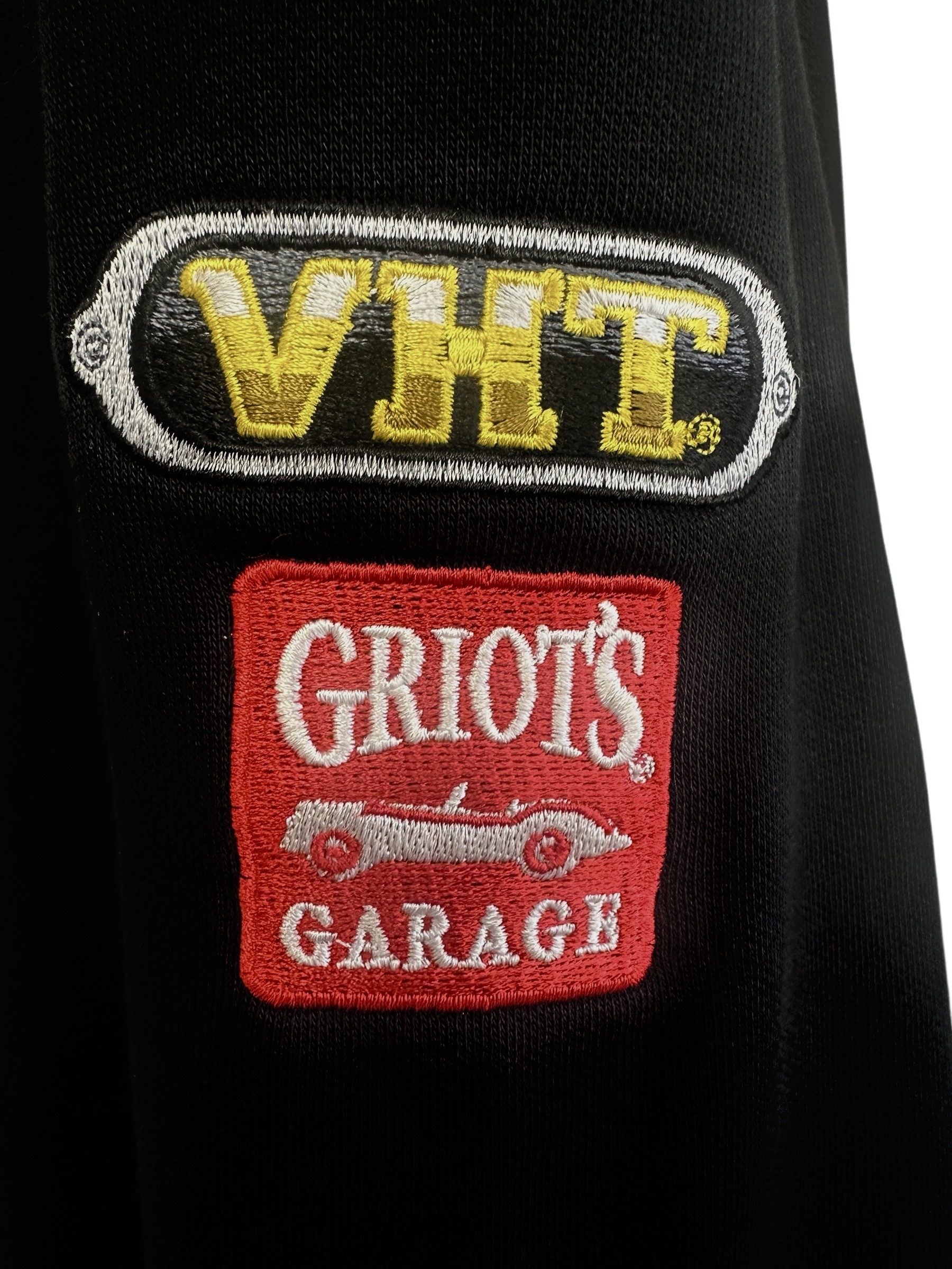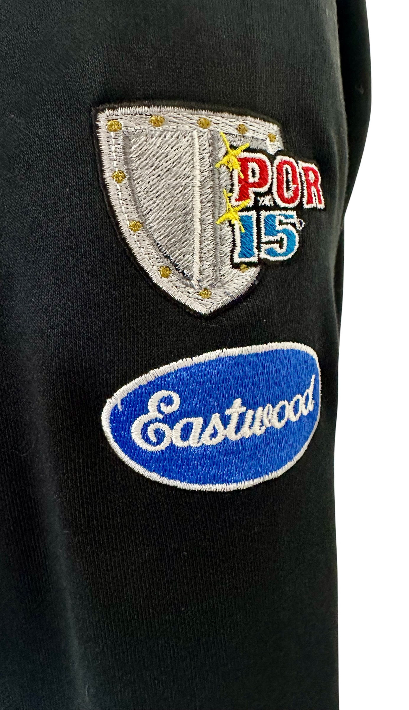 High Quality Jacket with embroidered the Frost Logo on the front left and on at the back under the collar. 1 x POR15 + 1 x Eastwood  logo on the upper left sleeve and  1 x VHT + 1 x Griots  on the upper right sleeve.