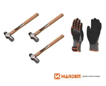 This versatile Harden Hammer Bundle includes three essential Ball Pein Hammers along with a pair of 10″ Mechanic Gloves — perfect for metalworking, fabrication, engineering and general workshop tasks.