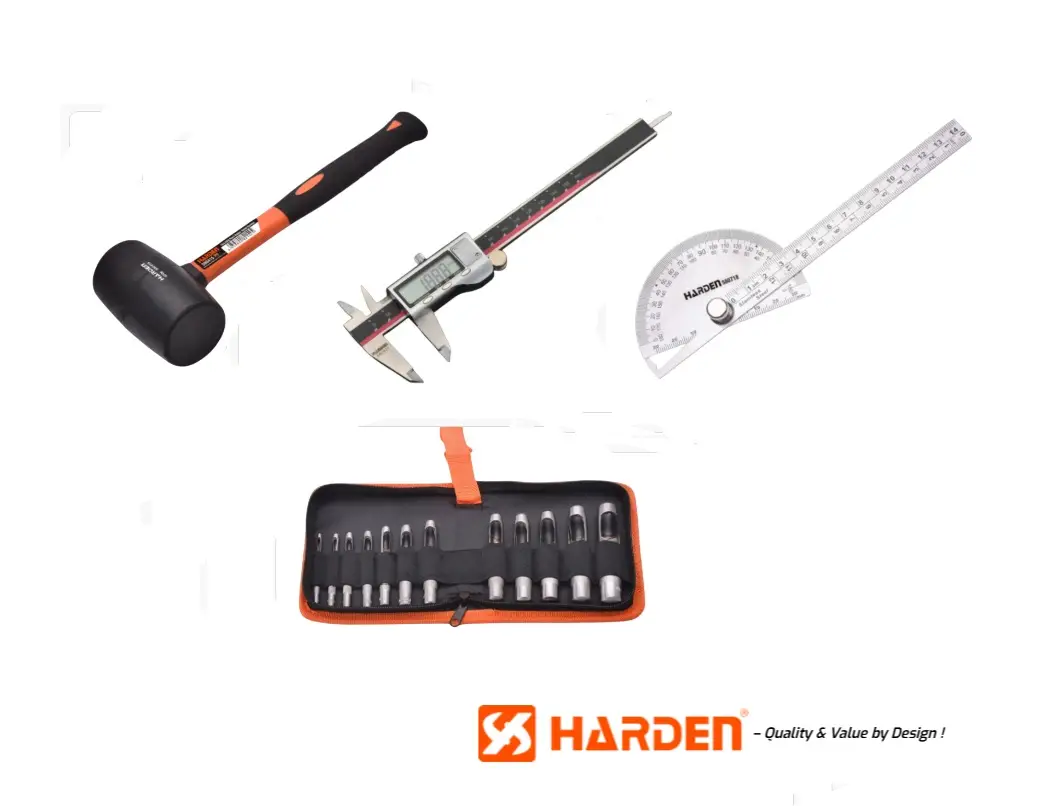 Harden Measuring & Workshop Tool Bundle – Protractor, Digital Caliper, Mallet & Punch Set