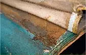 20. …it actually isn’t. The bright orange appears to be the remains of some padding put in between the vinyl and the steel roof — nicely attracting and harbouring moisture!