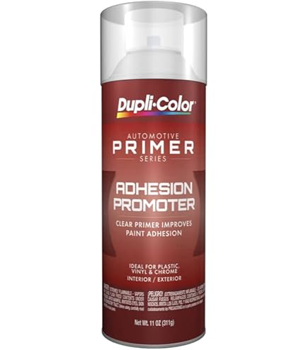 Dupli-Color® Plastic Adhesion Promoter improves adhesion of enamel and lacquer top coats to all surfaces, including plastic and chrome. Adhesion Promoter is an all-purpose clear primer ideal for both interior and exterior applications.