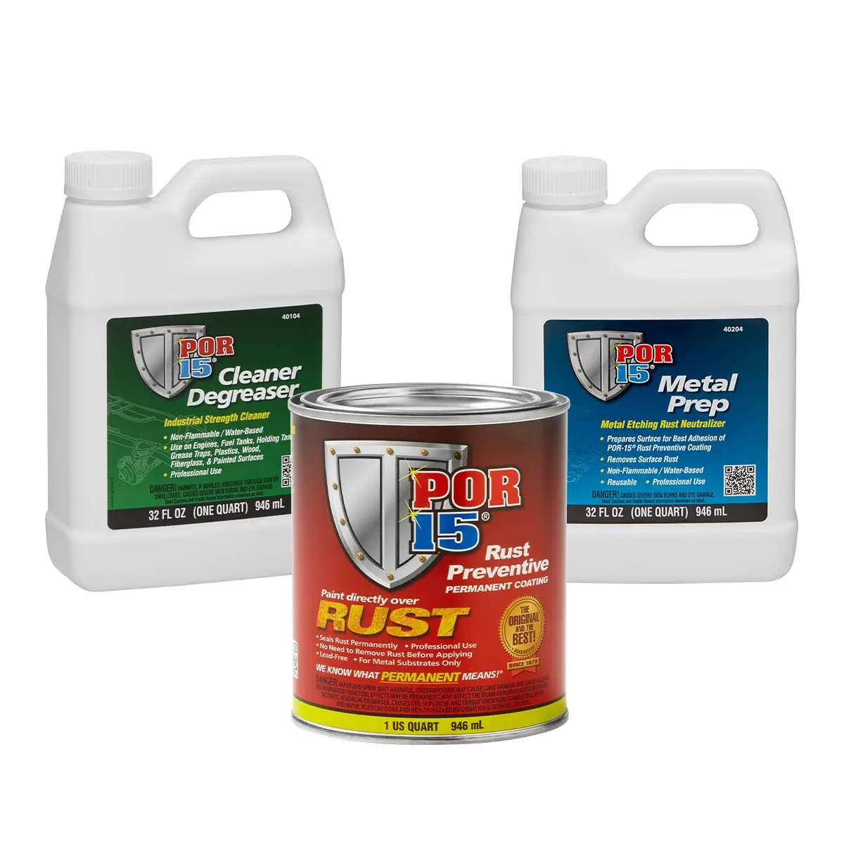 Includes Marine Clean, Prep and Ready and POR15 rust preventative paint together.